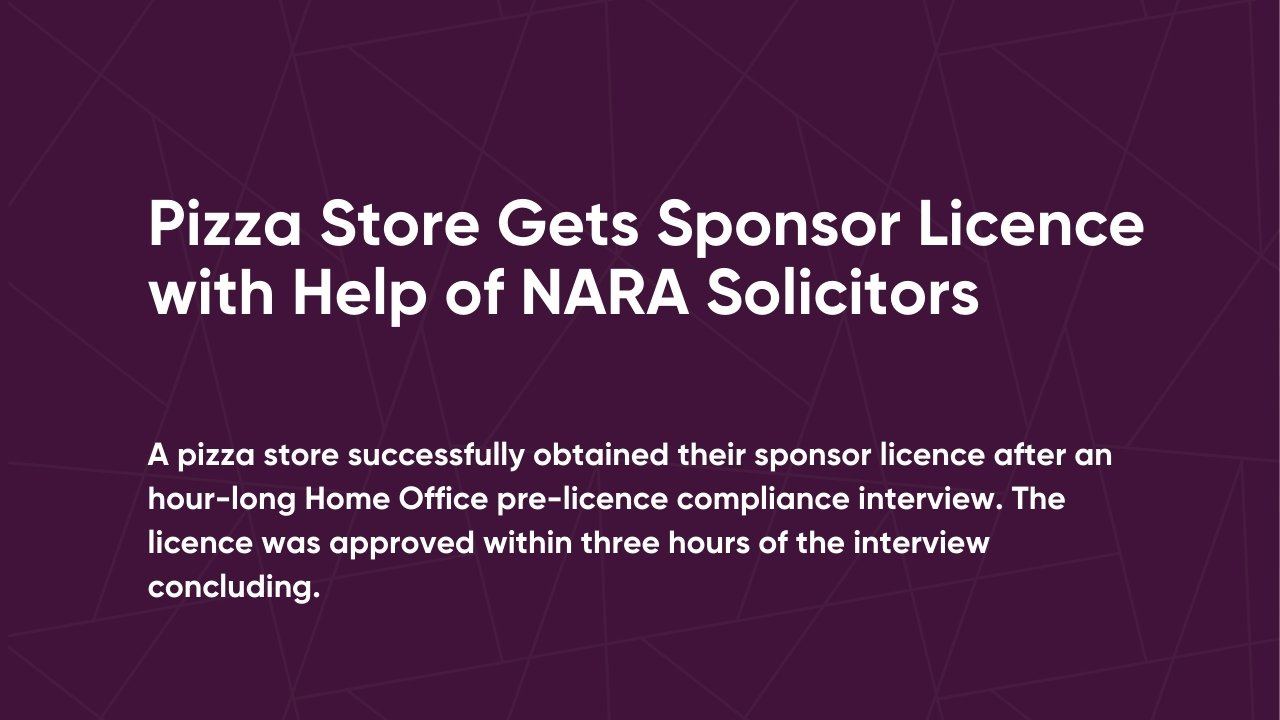 Pizza Store Gets Sponsor Licence with Help of NARA Solicitors