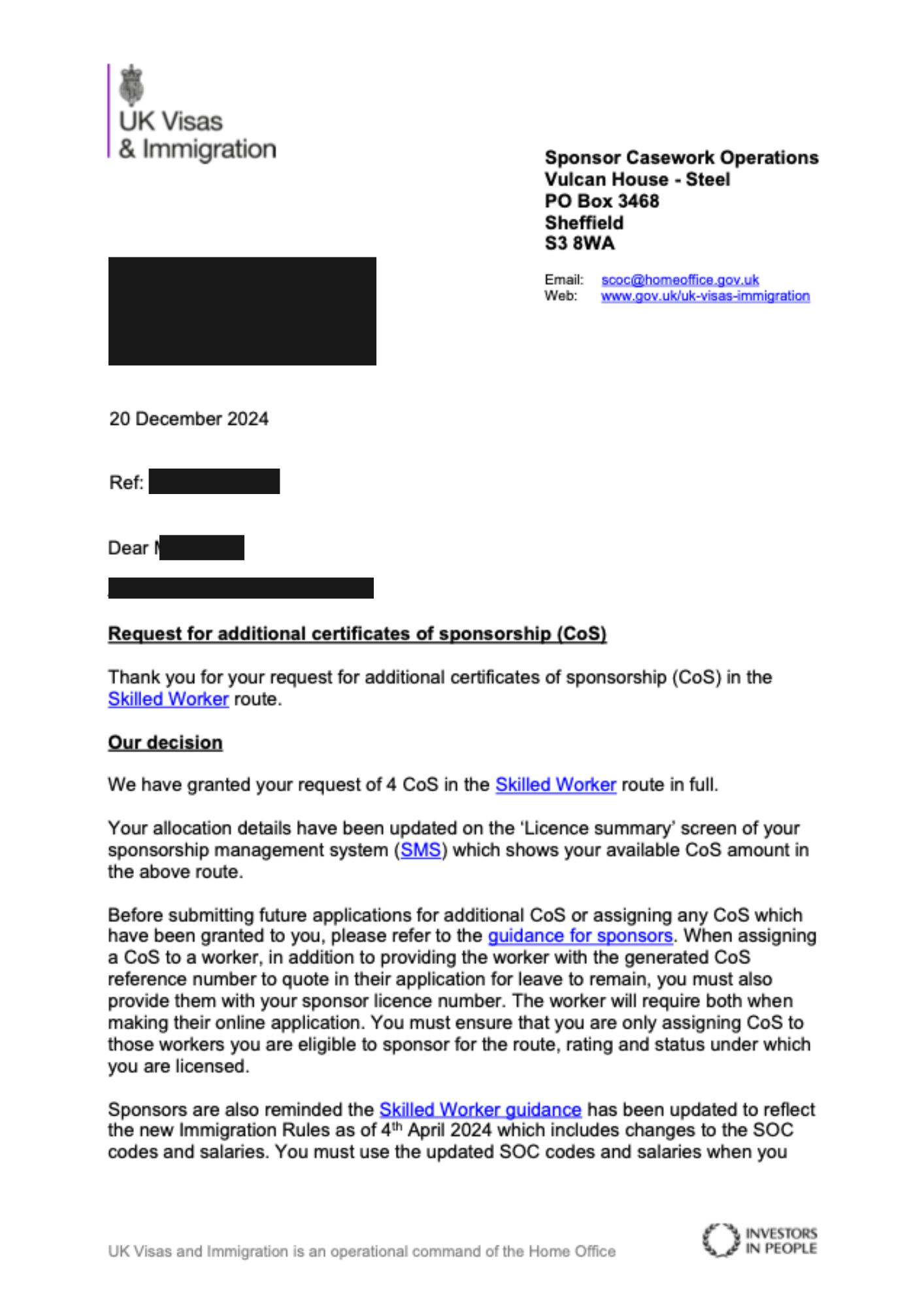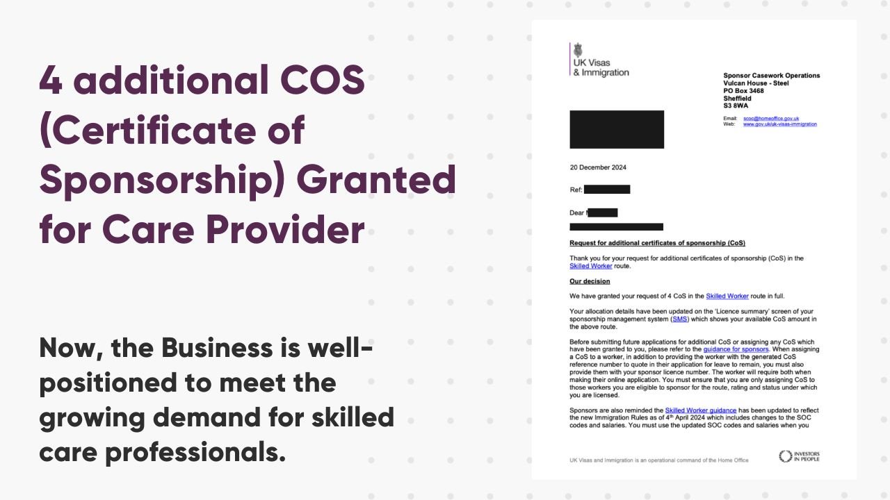 This achievement marks a significant turnaround because of Certificate of Sponsorship (CoS) refusals are common for care providers.