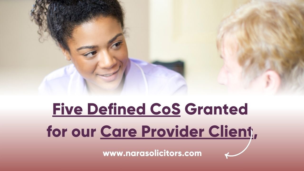 At Nara Solicitors, we are excited to share a recent success story that highlights our dedication to helping our clients. Our client, a care provider, is granted 5 Defined COS When Certificate of Sponsorship (CoS) refusals are common for care providers.