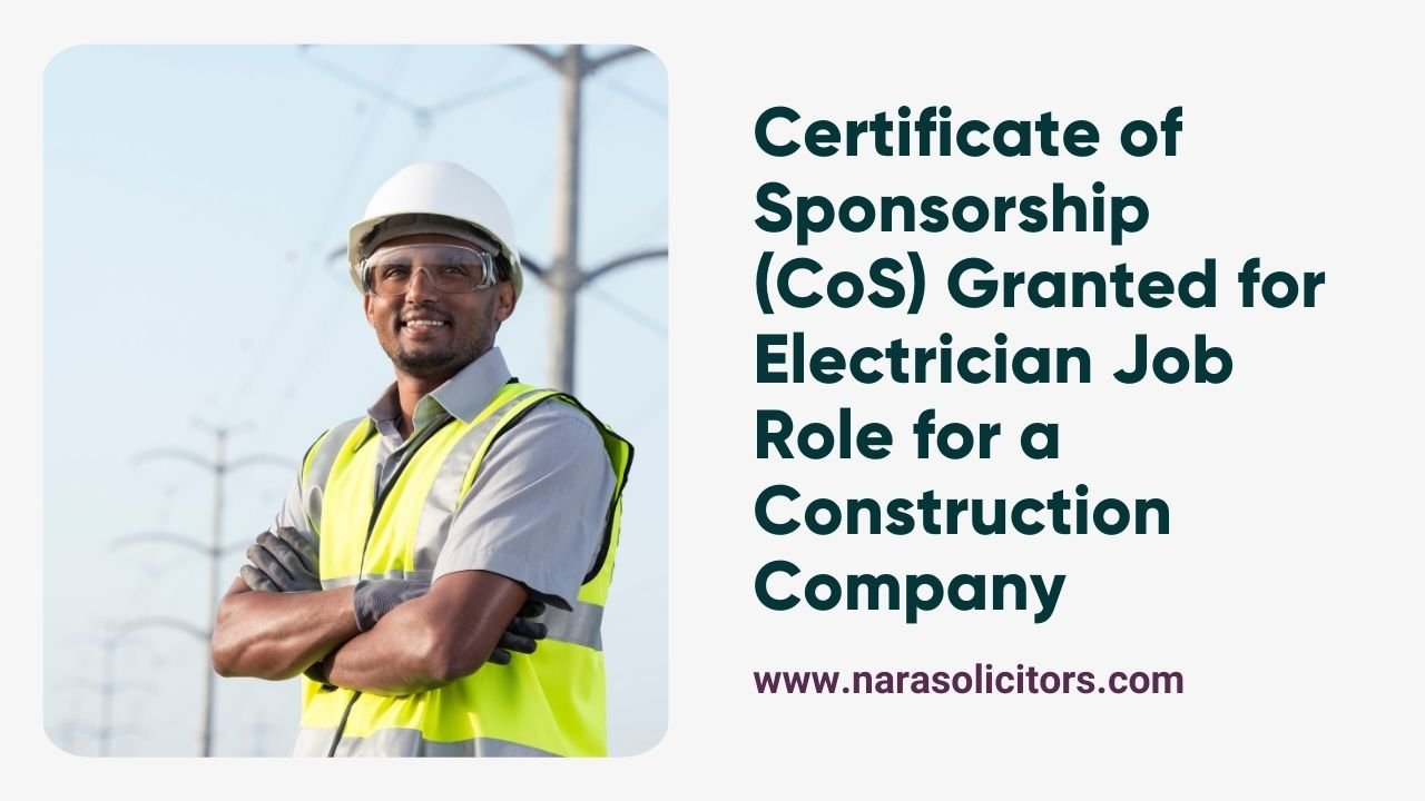 At NARA Solicitors, we continue to support businesses across various industries in securing the talent they need to thrive. We are pleased to share another success story where we assisted a construction company in securing a Certificate of Sponsorship (CoS) for a skilled worker.