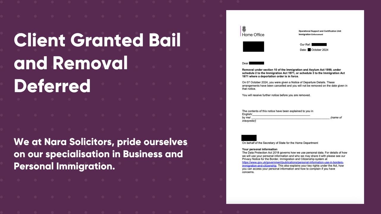 In a recent case handled by Nara Solicitors, our firm successfully advocated for a client facing imminent removal from the UK.