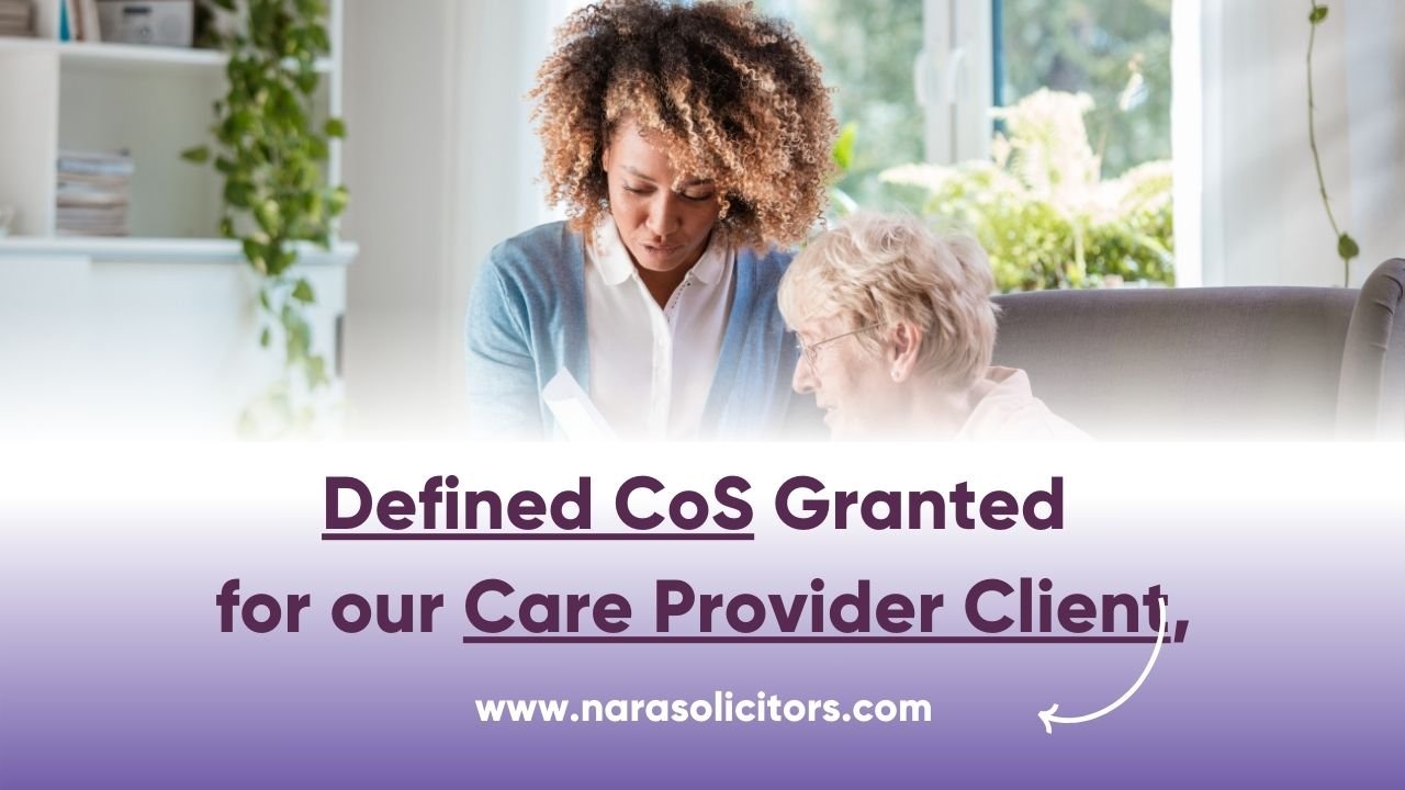 We are excited to share another success story of ours that highlights our dedication to helping our clients. Our client, a care provider, is grantedย Defined COS When Certificate of Sponsorship (CoS) refusals are common for care providers.