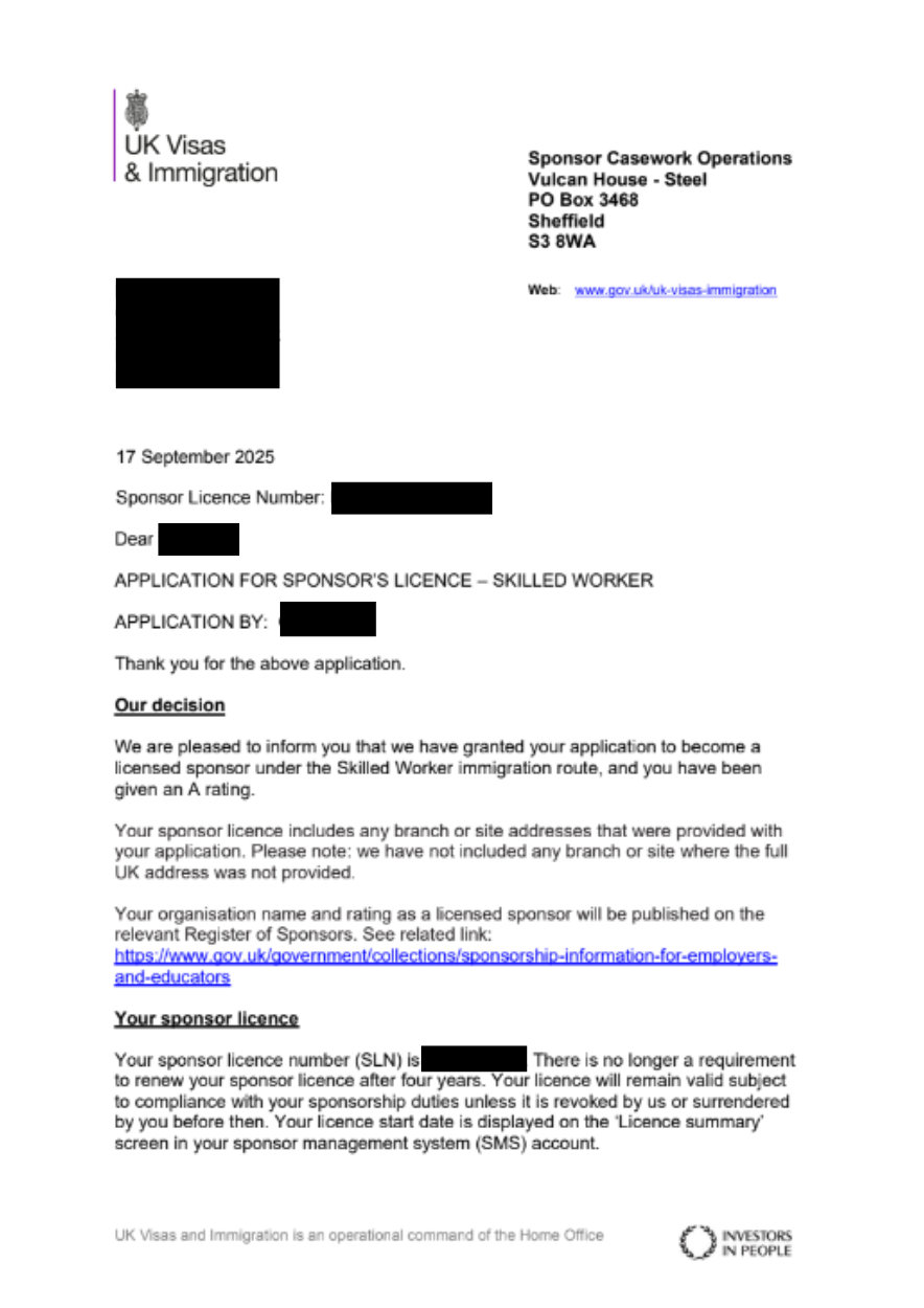 This result shows that even very young companies can secure a Sponsor Licence if their application is properly prepared.