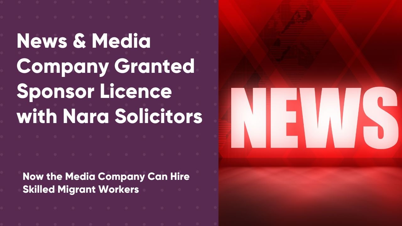 We are delighted to announce that Nara Solicitors successfully obtained a skilled worker sponsor licence for a UK-based media company.