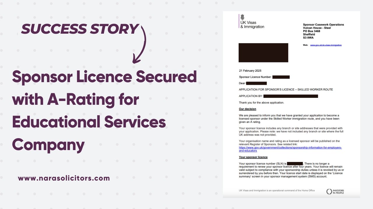 Also Read: Success Story: Sponsor Licence Granted for Retail Business