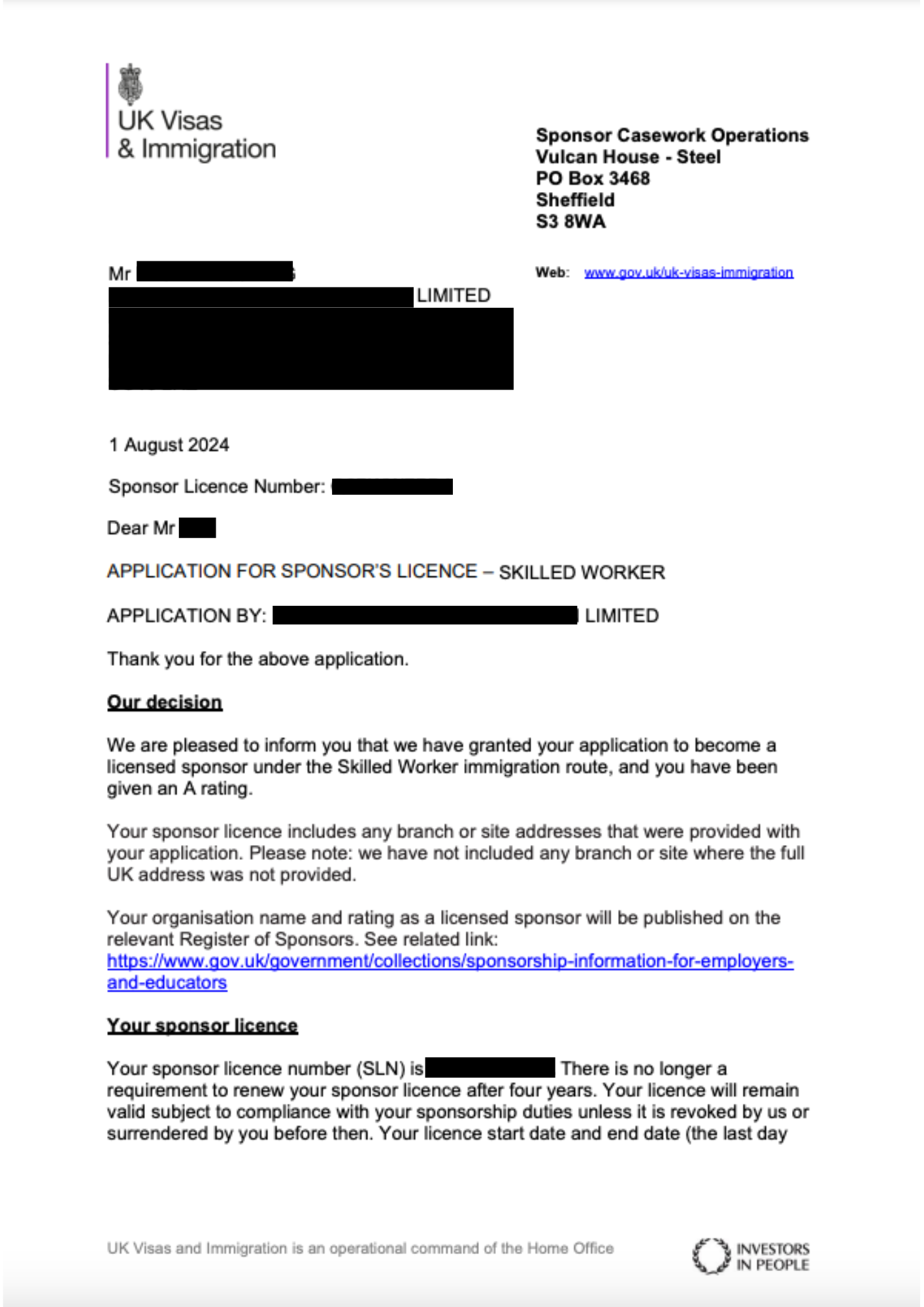 Sponsor Licence secured by Construction Company in just 1 Day