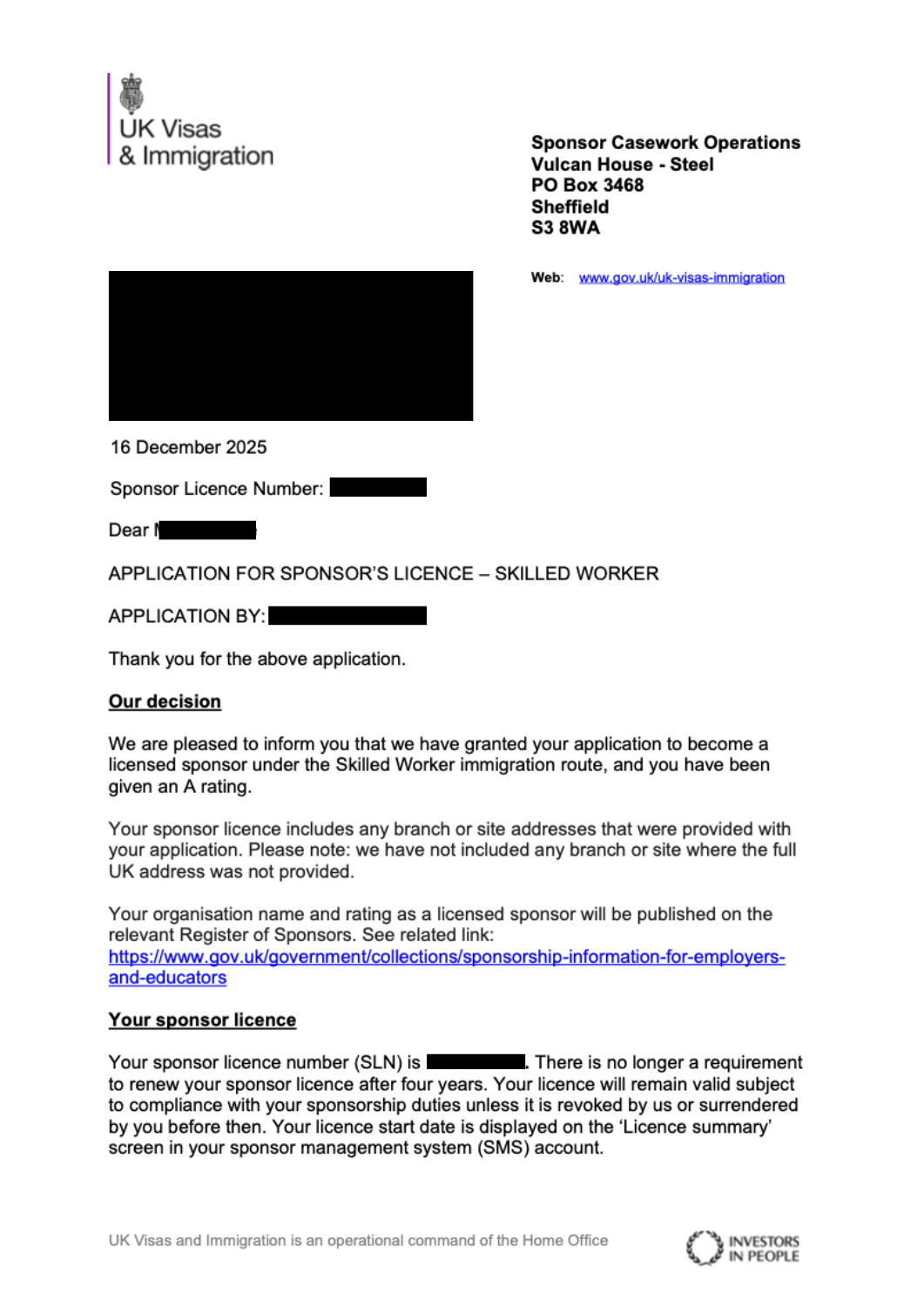 Client of ours has successfully secured their Skilled Worker Sponsor Licence with the support of NARA Solicitors. The licence was approved with an allocation of 3 Certificates of Sponsorship.
