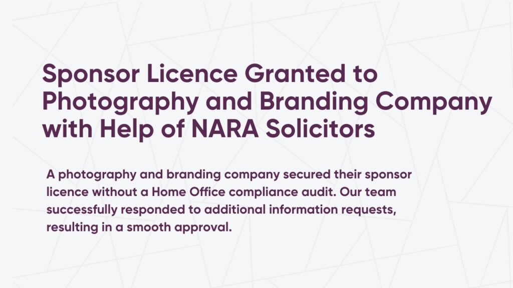 Sponsor Licence Granted to Photography and Branding Company with Help of NARA Solicitors