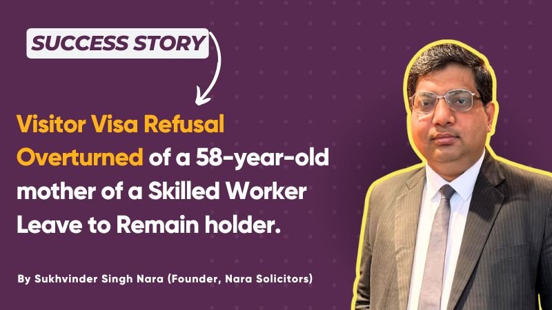 At Nara Solicitors, we recently assisted a 58-year-old mother of a Skilled Worker Leave to Remain holder in overcoming a UK visitor visa refusal. Despite strong evidence, her application was unfairly denied for "insufficient ties" to her home country.